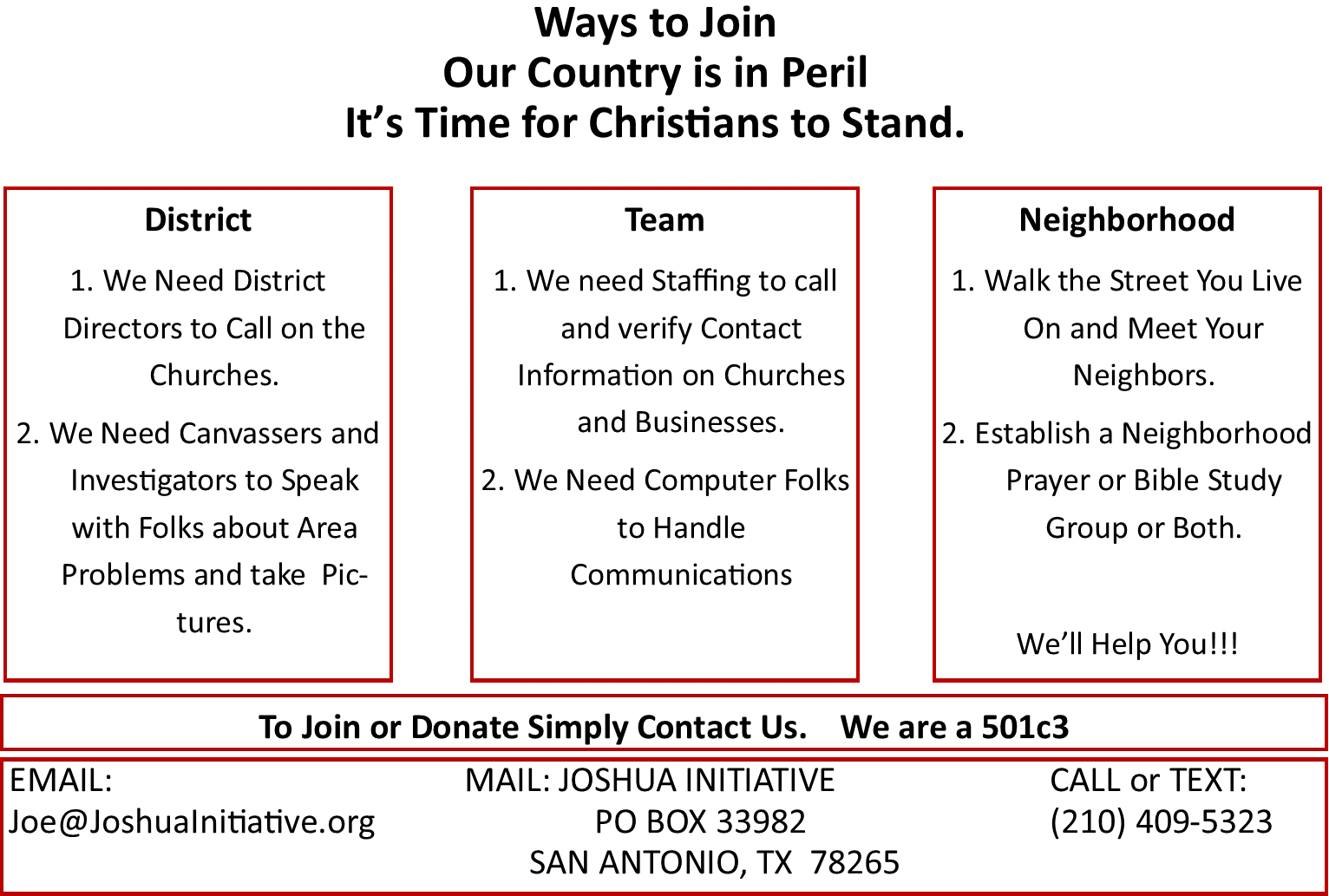 Join Joshua Initiative or Donate or BOTH, and feel the Joy in your life of Standing for Jesus.